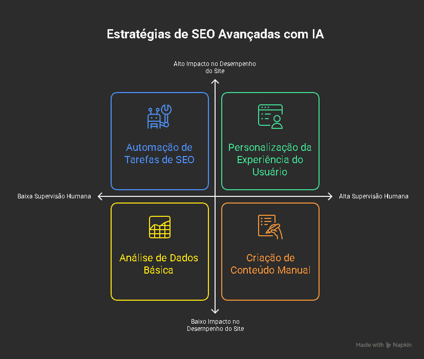 No SEO avançado, a IA atua principalmente em quatro frentes: